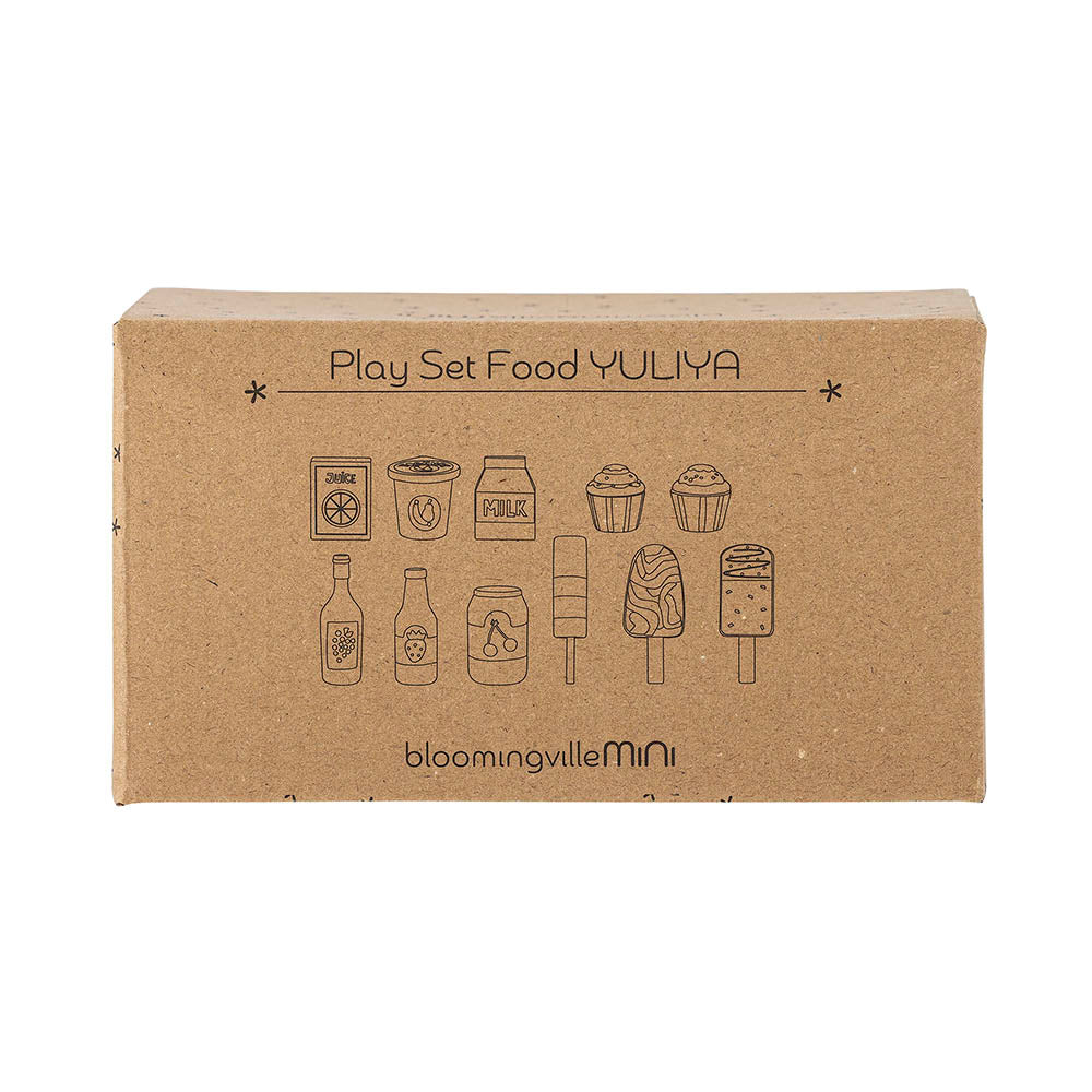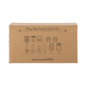 Das „Yuliya“ Spielset Küche von Bloomingville MINI besteht aus 11 liebevoll bemalten Holzteilen, die verschiedene Lebensmittel und Küchenzutaten darstellen. Die kindgerechten Formen und Farben laden zum fantasievollen Spielen ein – ideal für die Spielküche, den Kaufladen oder kreative Rollenspiele im Kinderzimmer.