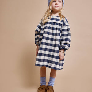 Búho "Gingham" Kleid | Navy – weich, verspielt & modern.