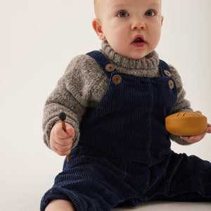 Die Cozmo Latzhose in Navy-Denim kombiniert robusten Denim-Cord mit einem zarten Rüschendetail an den Trägern – für einen Look, der praktisch und gleichzeitig charmant ist. Der weiche, strukturierte Stoff ist angenehm zu tragen und macht jede Bewegung mit. Perfekt für Babys im Alltag, in der Kita oder bei Familienausflügen.