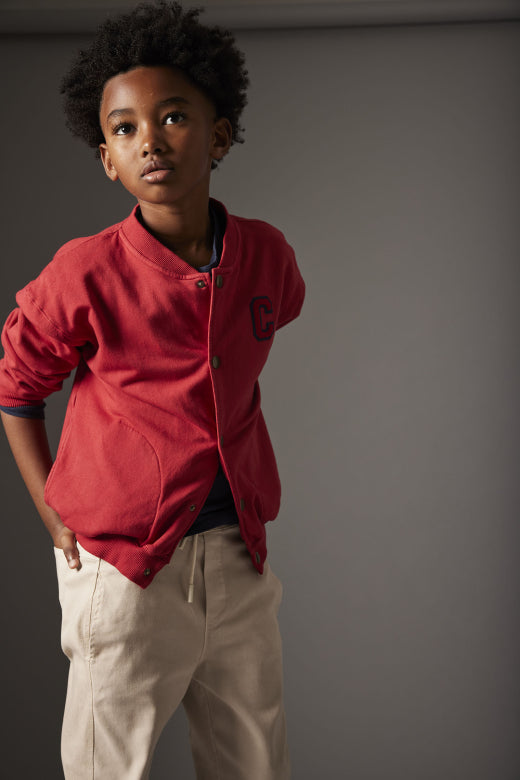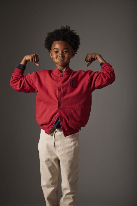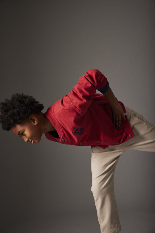 Die bequeme und nachhaltige COZMO Twill-Hose für Kinder verbindet Bewegungsfreiheit mit modernem Look – fair produziert in Barcelona.