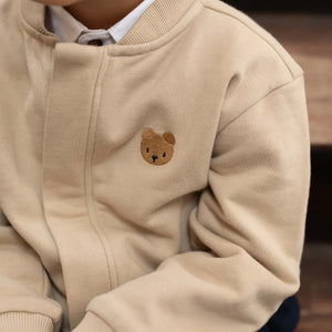 Ein liebevolles Detail ist die zarte Bärenstickerei auf der Brust – ein echter Hingucker! Die perfekte Außenschicht für Abenteuer, Spiel und Entdeckungsreisen im Freien.