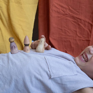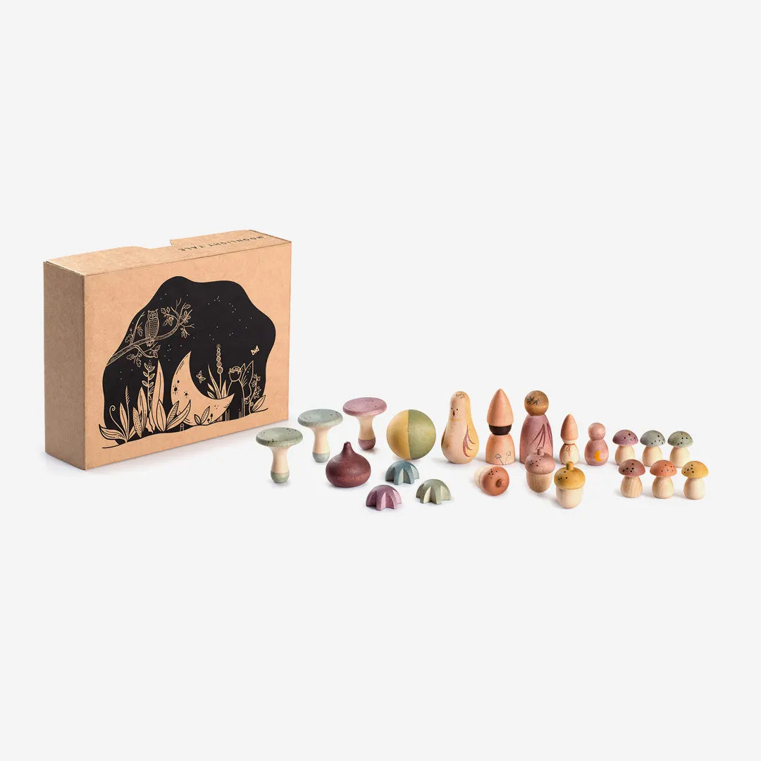 Es war einmal vor langer Zeit ein Mondlichtkönigreich... ab da kann die Geschichte in unendlichen Varianten weiter gespielt werden. Das Holzspielzeug Set vonGrapatenthällt 22 organisch geformten Holz-Elemente. Das hochwertige Spielzeug ist ausBirken- und Buchenholzgefertigt, mit wasserbasierten Farben bemalt und natürlichen Ölen und Wachsen behandelt. Hergestellt in Spanien.