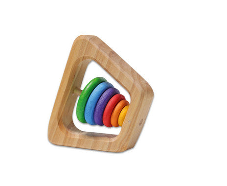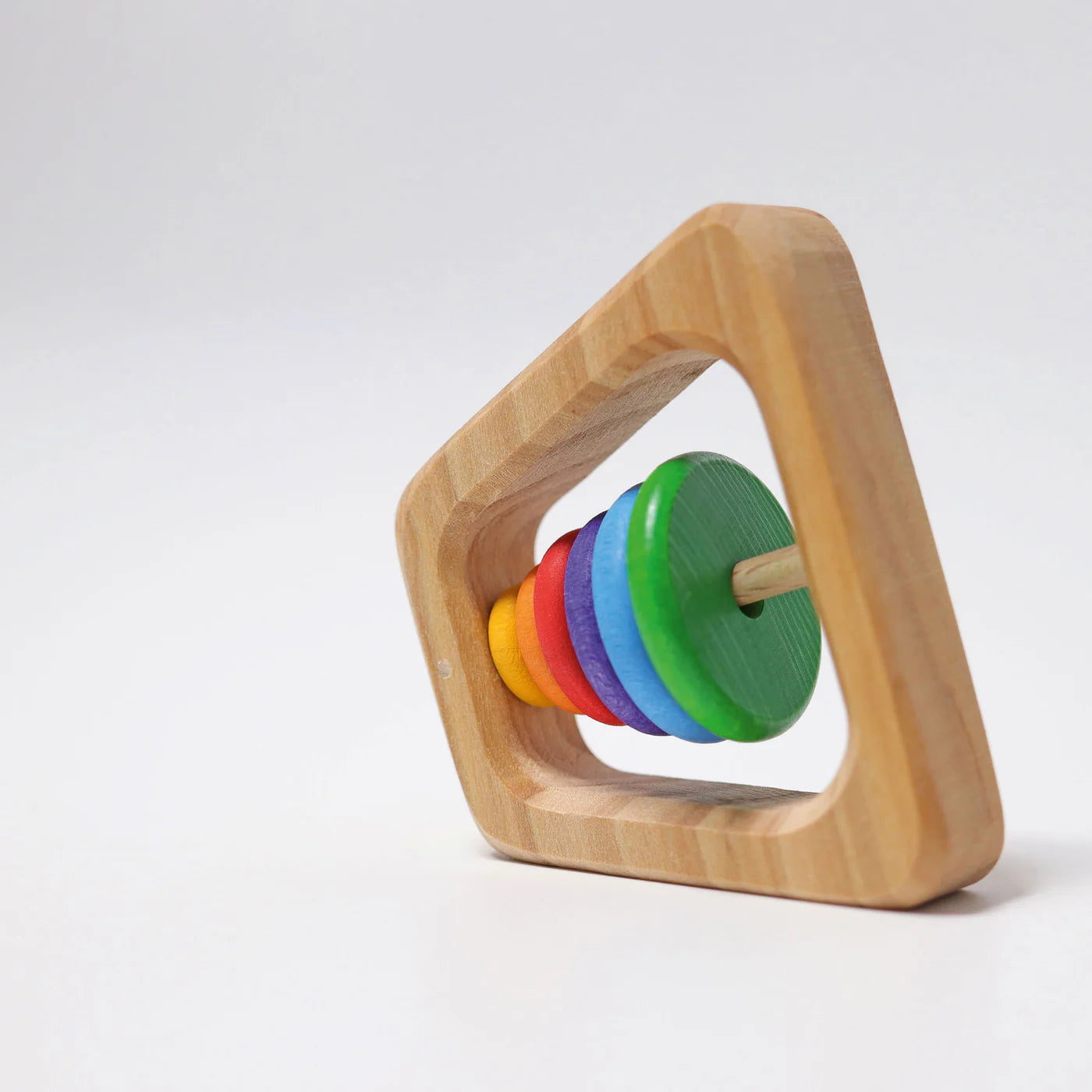 Grimm’s Pyramiden-Rassel – Greifling, Rassel & Beißring in einem, aus natürlichem Erlenholz.