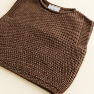 Handgestrickter und nahtlose Strick-Weste "Mocha" aus 100% feinster italienischer Merinowolle. Es wird nahtlos gefertigt und ist vielseitig kombinierbar.