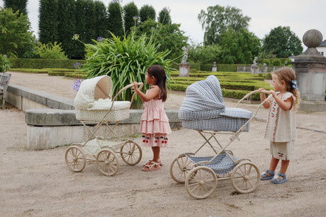 Der grosse Puppenwagen von Konges Sløjd. Ein bezaubernder Puppenwagen im Vintage-Stil mit vier stabilen EVA-Rädern – ideal für kleine Puppeneltern und stundenlangen Spielspaß.