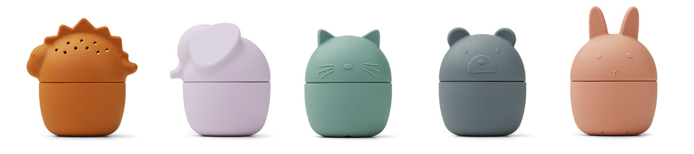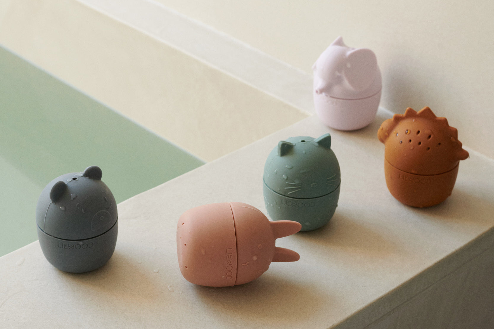 Die Liewood Badefiguren aus weichem Silikon sorgen für den ultimativen Badespass. Geformt als Elefanten und Krokodile, können die Figuren aus dem Mund oder Rüssel Wasser spritzen. Sie sind für kleine Kinderhände leicht zu greifen und zu halten. Die Figuren lassen sich öffnen, damit keine Wasser- oder Seifenrückstände im Innern zurückbleiben.