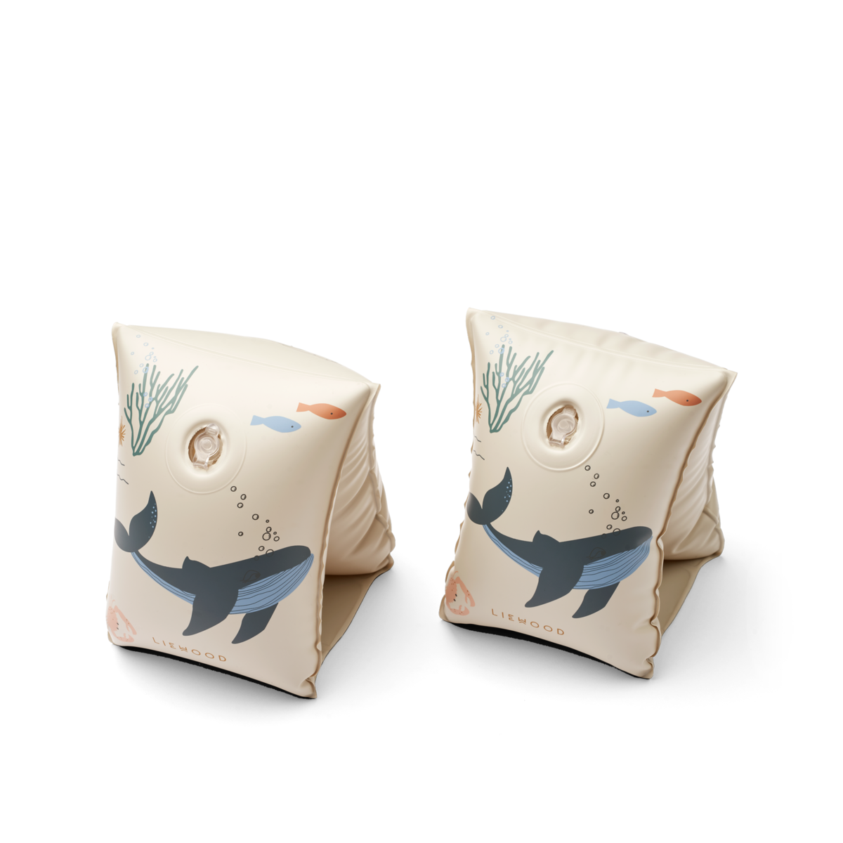 Coole Schwimmflügel "Shirley Sea Creature Sandy" von Liewood in hellbeige mit Unterwasser Print. Die Schwimmflügel bieten nicht nur Sicherheit sondern sind ein echter Hingucker.