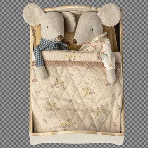 Das Maileg Bett in Off White ist die perfekte Schlafgelegenheit für kleine Mäuse. Mit edlen Stoffen und einer goldfarbenen Holzoberfläche gestaltet, bietet es Platz für zwei Mäuse und macht jede Puppenhaus-Szene besonders gemütlich. Ein liebevolles Accessoire für fantasievolle Geschichten und erholsamen Schlaf in der Miniaturwelt.