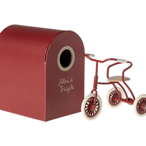 Dreirad für Mäuse in Rot von Maileg. Passend für Grosser Bruder & Grosse Schwester Mäuse. Sie passen mit ihren Magneten in den Händen perfekt zu diesem niedlichen Dreirad. Es wird in einer Garagenbox geliefert.