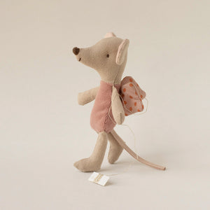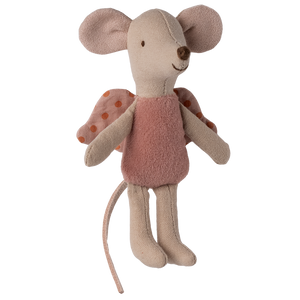 Die Feenmaus von Maileg hat weiche Flügel und eine Schnur auf dem Rücken, damit sie überall hin fliegen oder hängen kann.