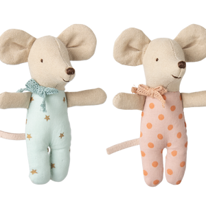 Zwei winzige Babymäuse, kuschelig eingepackt in ihrer Streichholzschachtel – die Maileg Zwillinge schlafen Seite an Seite und bringen zarte Träume und ganz viel Herz ins Kinderzimmer.