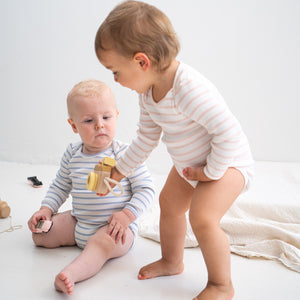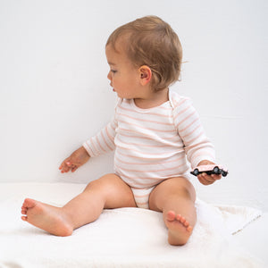 Der langärmlige Body von minimalisma aus hochwertigem Seide-Baumwolle-Mix bietet maximalen Komfort für Babys und Kleinkinder – sanft zur Haut, hypoallergen und mit natürlichem Sonnenschutz. Der Body wächst bis zu 6 Monate mit dem Kind mit.