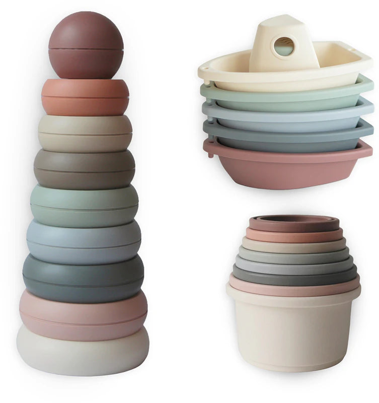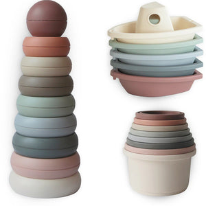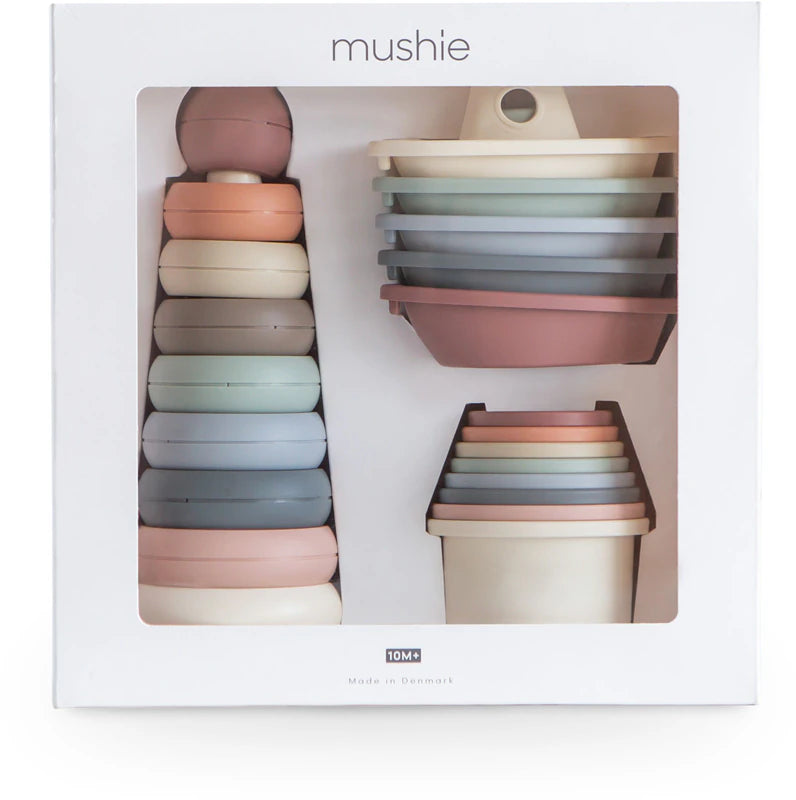 Die Mushie Geschenkbox mit zwei liebevoll gestalteten Spieltürmen und Stapel-Boote begeistert Eltern und Kinder gleichermaßen. Perfekt für kleine Entdecker, fördert sie auf spielerische Weise Motorik, Kreativität und sensorische Entwicklung.