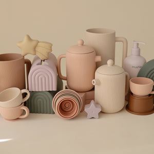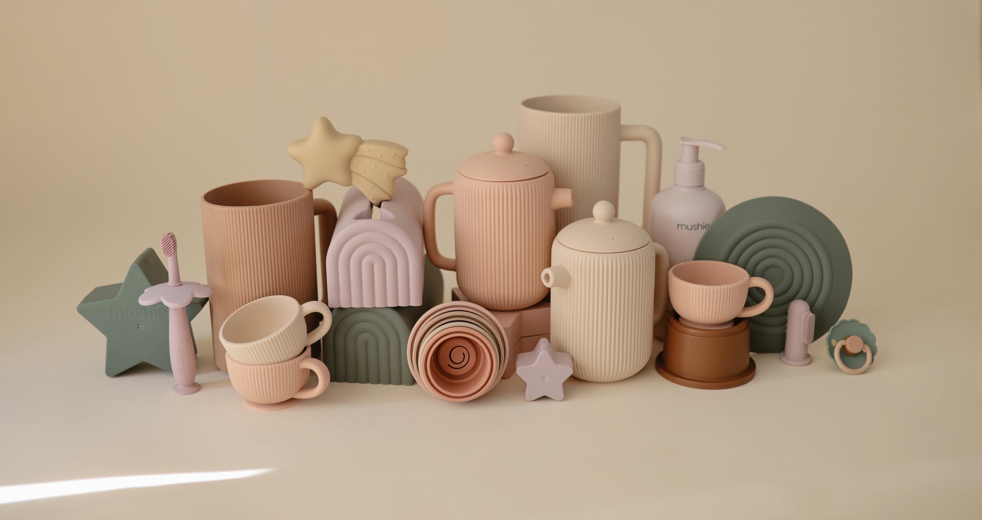 Das Mushie Silikon Teespielset in der sanften Farbe Blush lädt Kinder zu fantasievollem Rollenspiel ein. Hergestellt aus weichem, lebensmittelechtem Silikon, bietet es eine sichere und stilvolle Möglichkeit, soziale und motorische Fähigkeiten zu fördern.