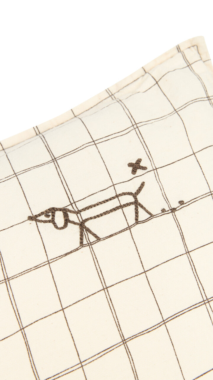 Nobodinoz Kissen mit Stickerei Natural Grid