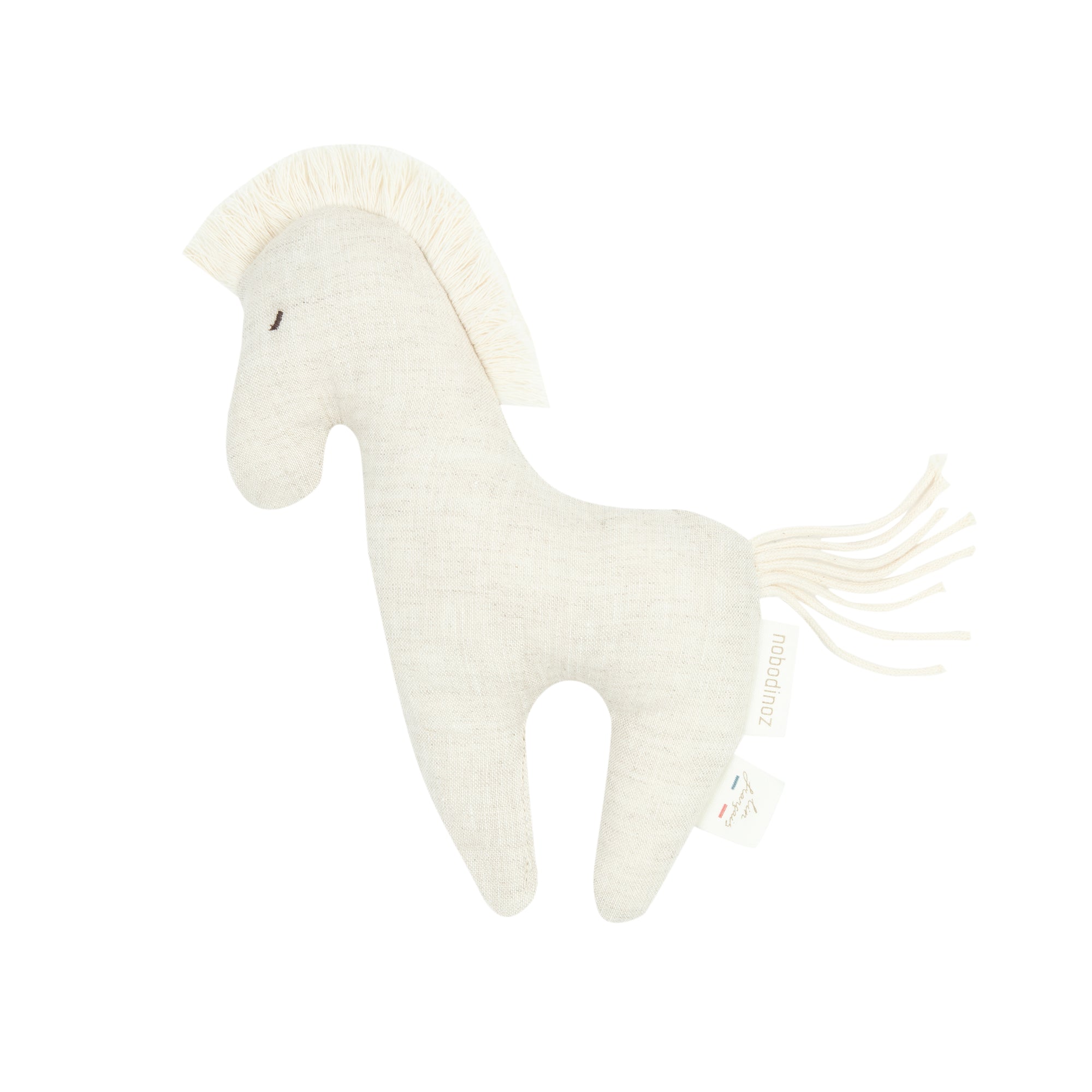 Wunderschöne Rassel aus Leinen von Nobodinoz als kleines Pferdchen.