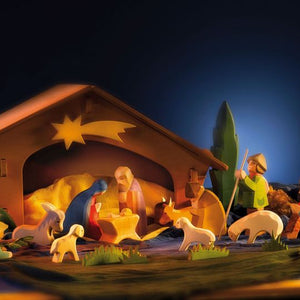Die Ostheimer Heilige Familie ist ein wunderschönes, handgefertigtes Set aus hochwertigen Holzfiguren, das die Weihnachtsgeschichte in liebevollen Bildern lebendig werden lässt. Jede Figur – Maria, Josef und das Jesuskind – wird mit grosser Sorgfalt aus nachhaltigem Holz gefertigt und von Hand bemalt. Die schlichte, harmonische Gestaltung lädt Kinder dazu ein, die Weihnachtsgeschichte spielerisch zu erleben und eigene Szenen entstehen zu lassen.
