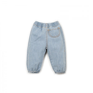 Play Up Jeanshose Kinder in Hellblau aus 100 % Baumwolle. Bequeme Denim Hose mit elastischem Bund und Tasche – nachhaltig in Portugal produziert.